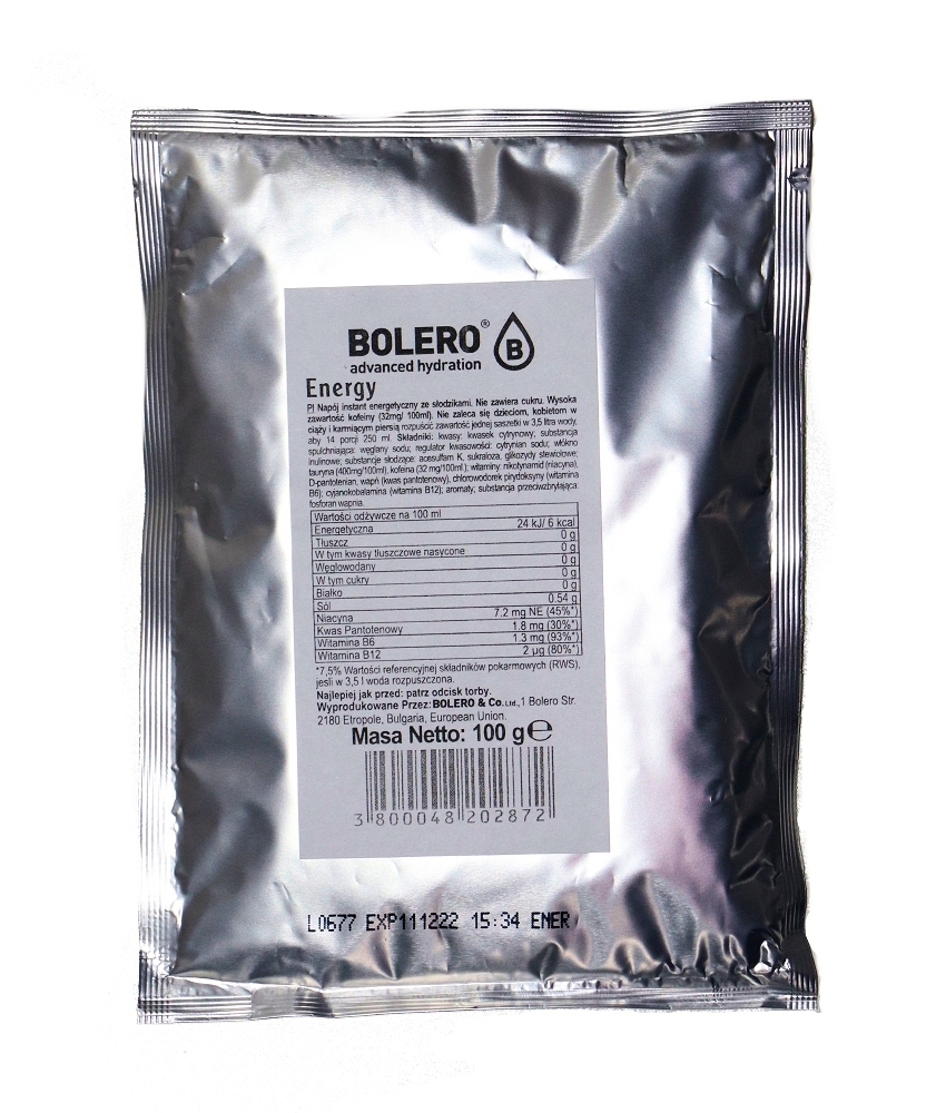 BOLERO 100g ENERGY – PROSZEK DO PRZYGOTOWANIA NAPOJU ENERGETYCZNEGO ZE SŁODZIKAMI