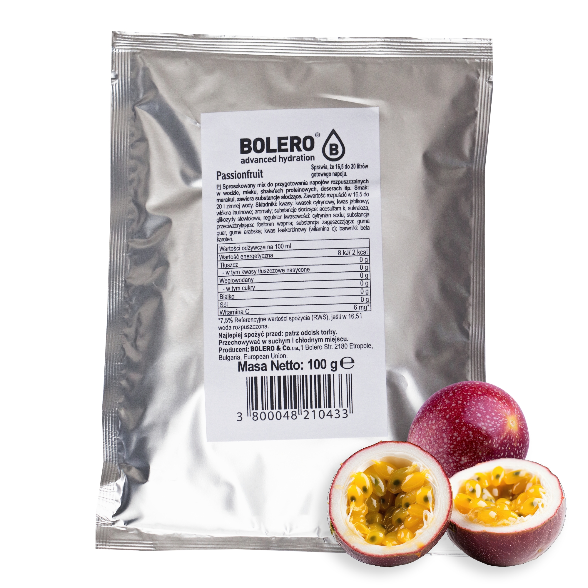 W składzie Bolero Passionfruit znajdują się naturalne barwniki i aromaty oraz słodzik stewia, dzięki czemu napój jest niskokaloryczny i nie zawiera cukru. Dodatkowo, owoc marakuja jest bogata w witaminy C i A, a także w potas i błonnik, co pozytywnie wpływa na zdrowie organizmu.